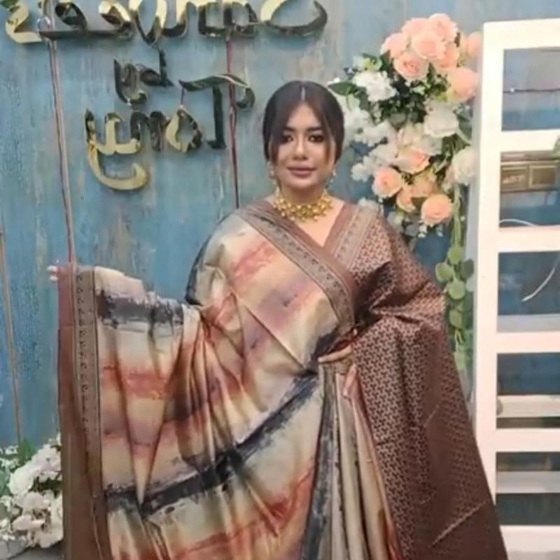 Orginal Indian Ajrakh Silk Sharee with blouse piece