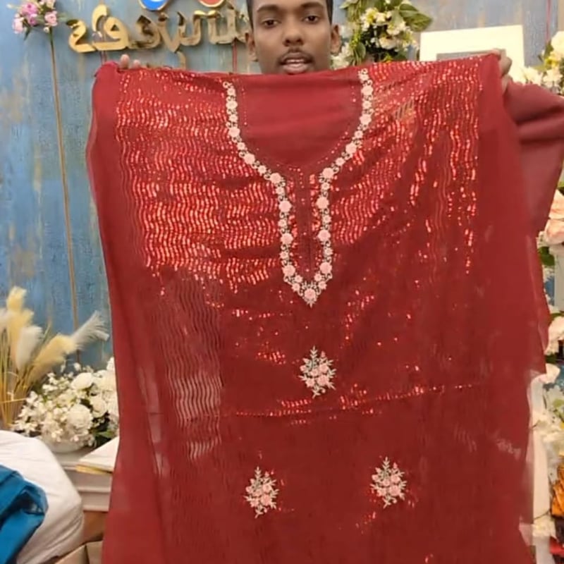 Pure Chiffon Georgette Embroidery Sequence four piece