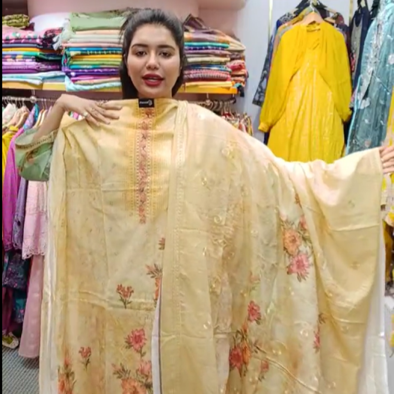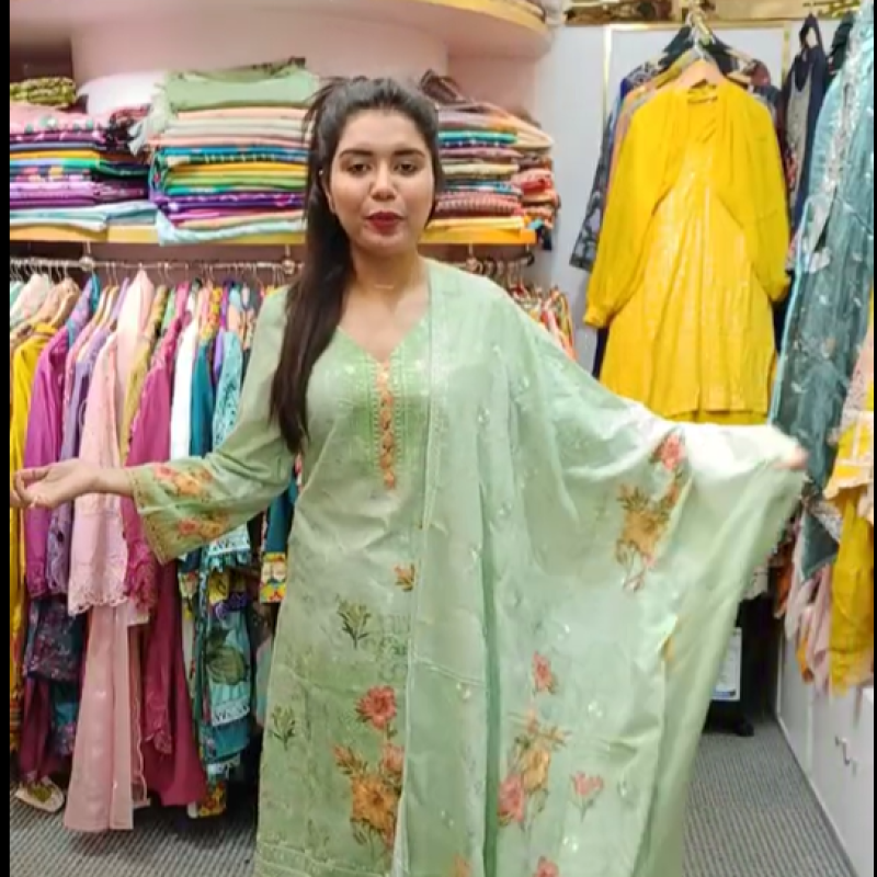 Pure Cotton Chikenkari Embroidery Sequence three piece