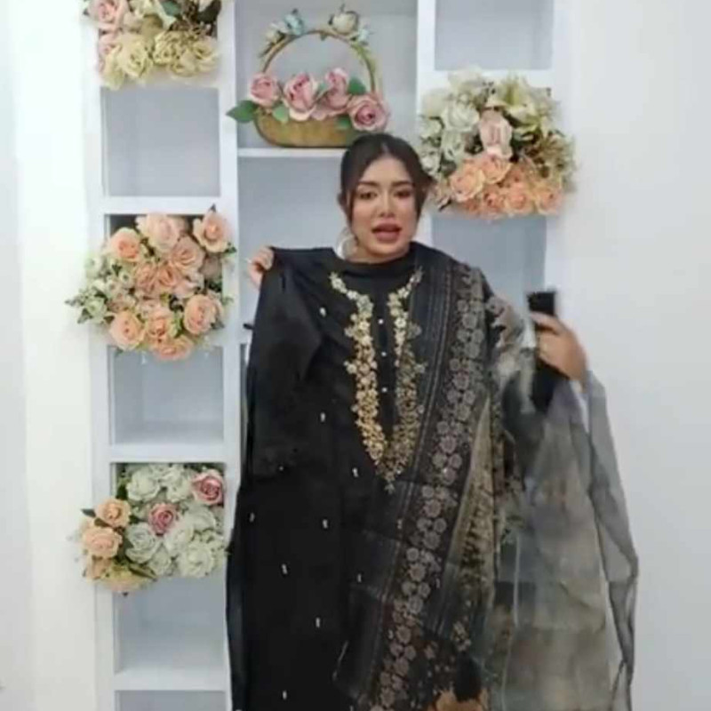 Pure Cotton Chikenkari Embroidery Semi Stitch three piece Body - 50, Long - 41 /-