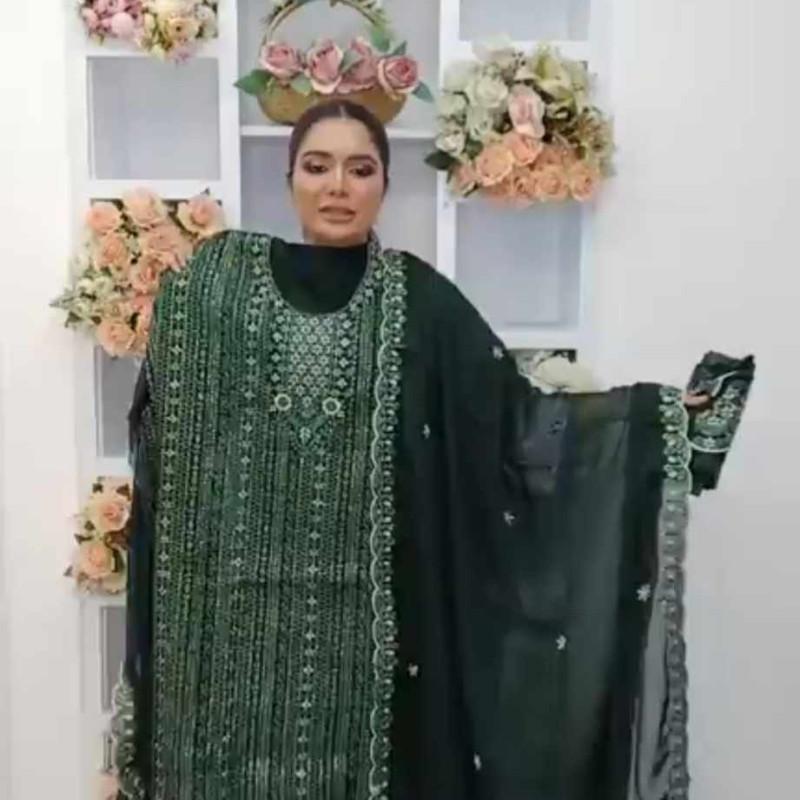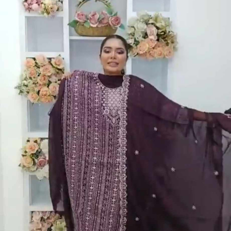 Pure Silk Cotton Embroidery Matte Sequence three piece