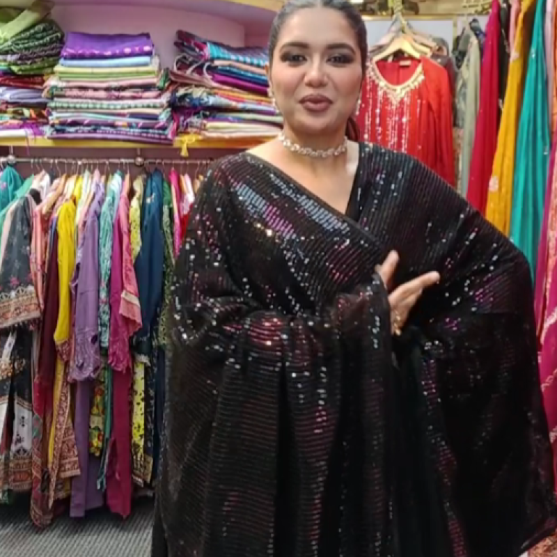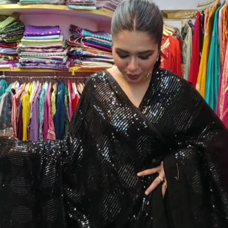 Pure Chiffon Georgette Embroidery Sequence Sharee with blouse piece