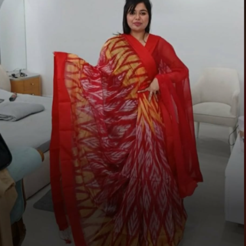 Pure Ikkat Silk Cotton Sharee with blouse piece-