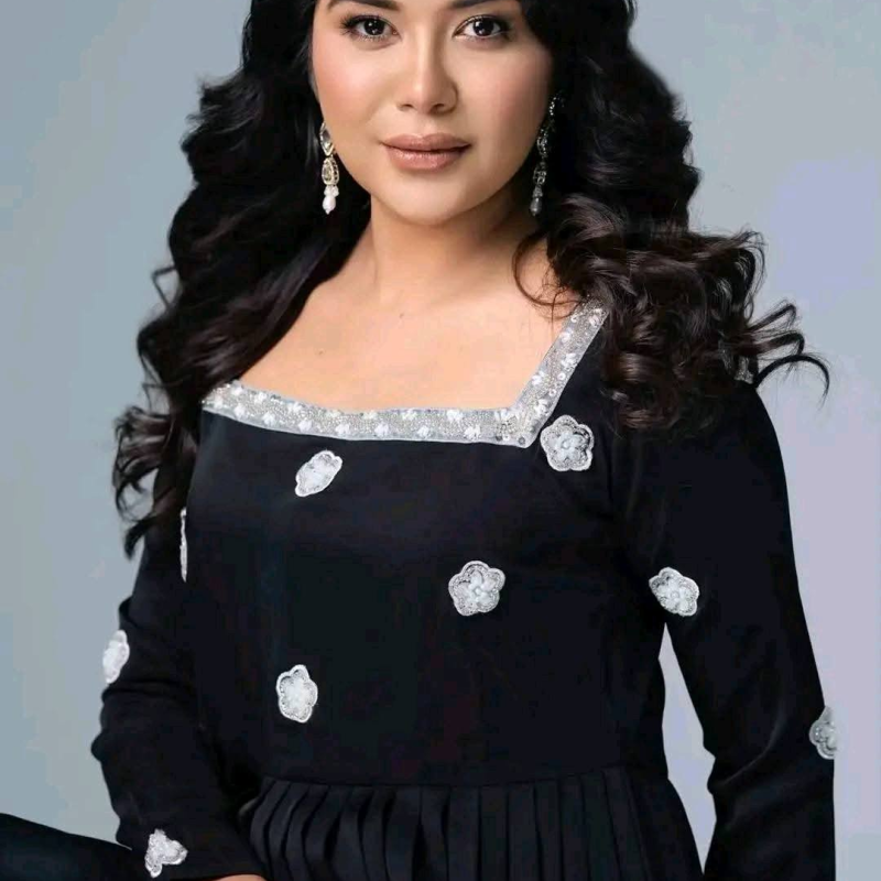Pure Silk Embroidery Sequence Stitch Gawn Size - M(38), L(42), XL(46), Long - 50