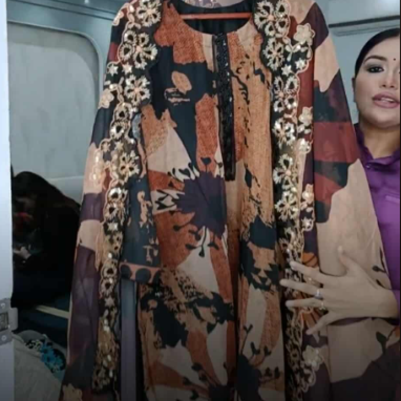 Pure Chiffon Georgette Embroidery Sequence Inner Attach Semi Stitch three piece Body - 48, Long - 44