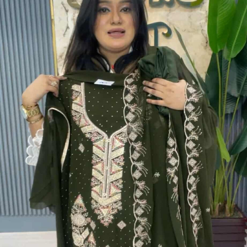 Pure Chiffon Georgette Embroidery Stone work four piece