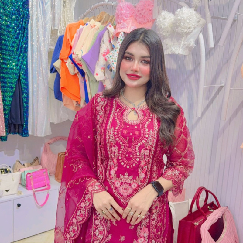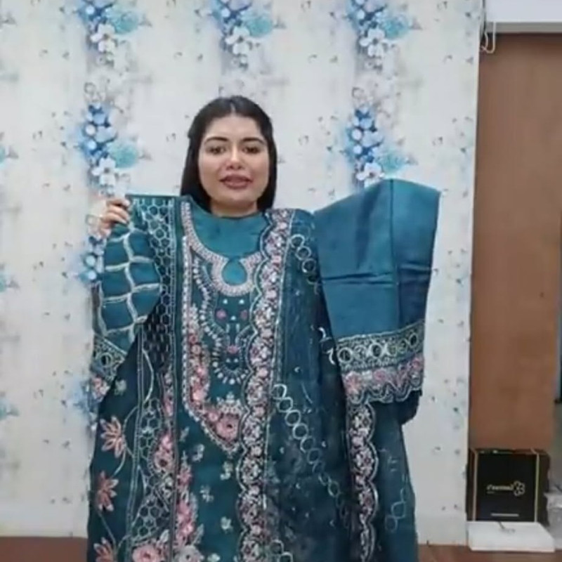 Pure Organza Maslin Embroidery Sequence Inner Attach Stitch four piece Body - 46, Long - 45/-