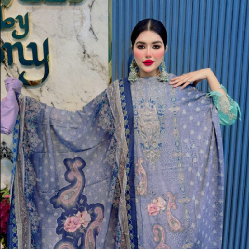 Pure Maslin Cotton Embroidery Sequence Stone work three piece