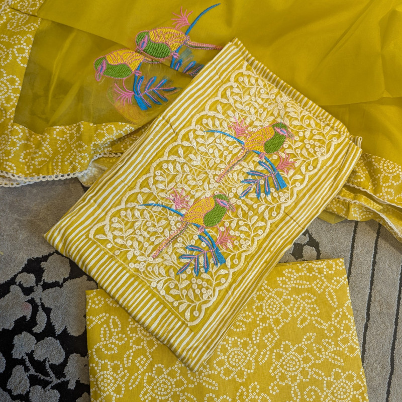 Original Indian Premium Cotton Embroidery Sequence three piece