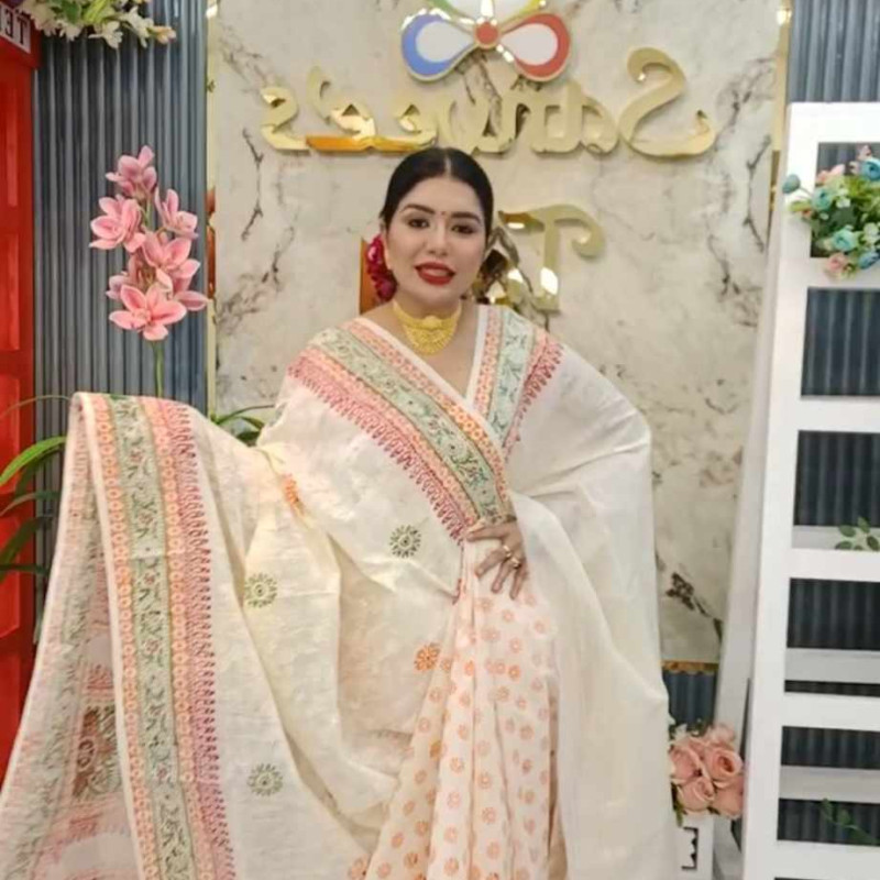 Pure Khadi Silk Cotton Hand Stitch Work Sharee with blouse piece