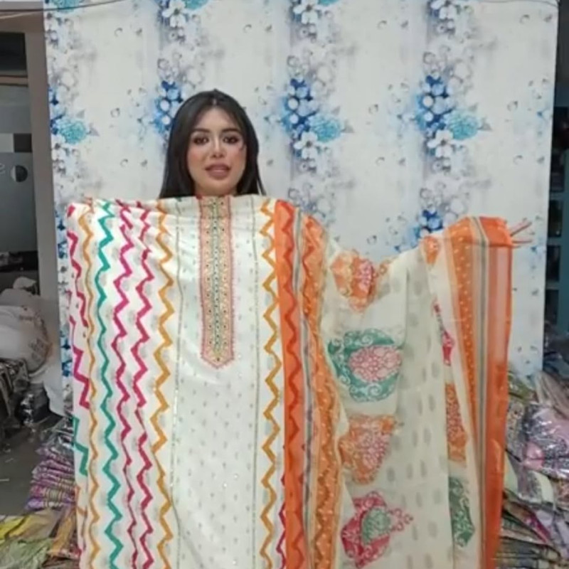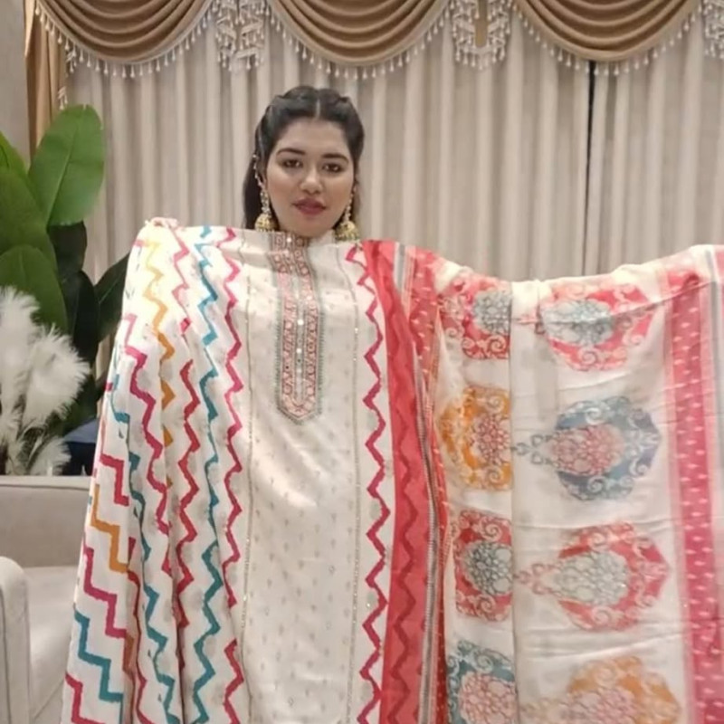 Orginal Indian Lahore Pure silk Embrodiery Stone Mirror work three piece /-