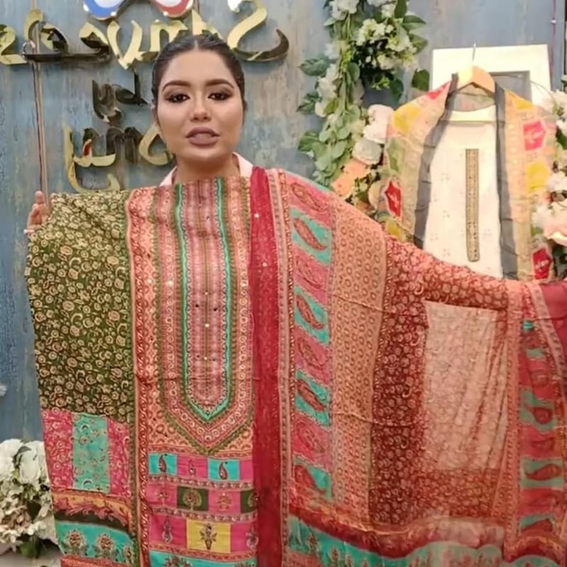 Orginal Indian Lahore Pure silk Embrodiery Sequence Mirror work three piece