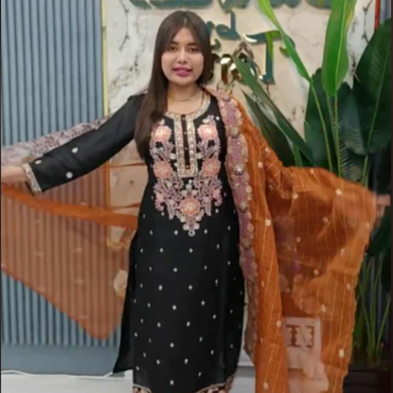 Pure Maslin Cotton Embroidery Sequence Semi Stitch three piece Body - 50, Long - 46