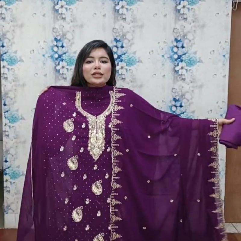 Pure Chiffon Georgette Embroidery Stone Work four piece /-