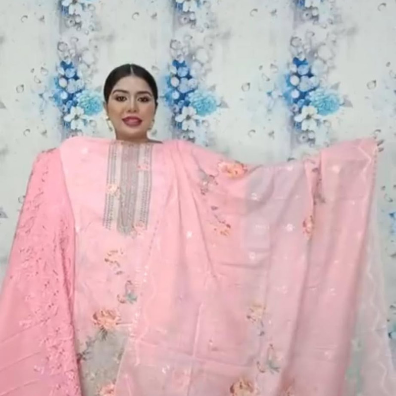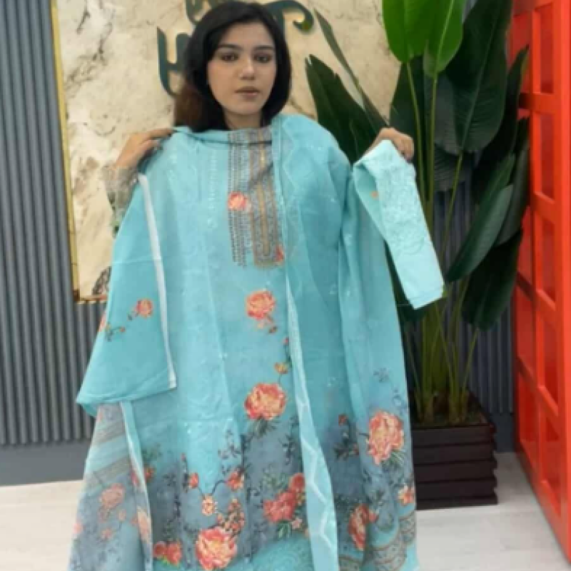 Pure Cotton Chikenkari Embroidery Sequence three piece /-