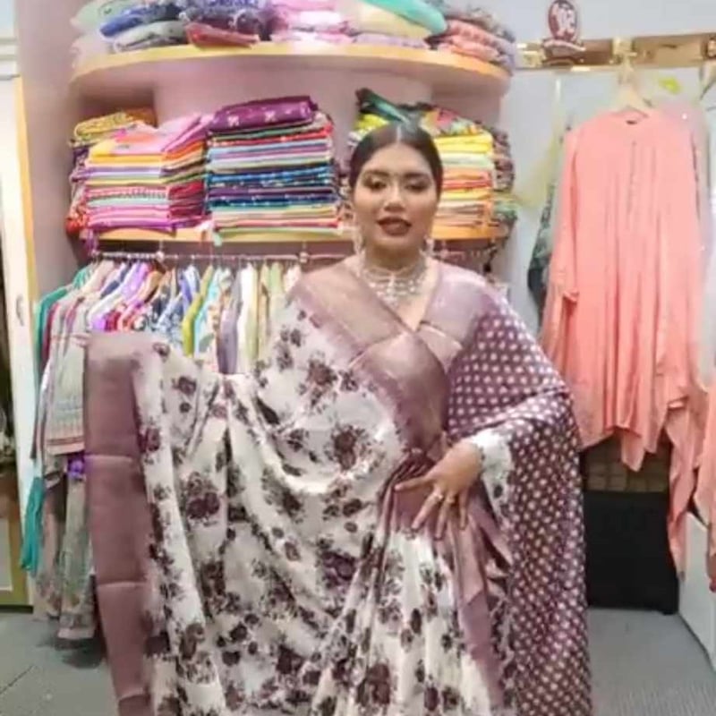 Orginal Indian Raj Silk Villa Crispy Linen Sharee with blouse piece 1850/-
