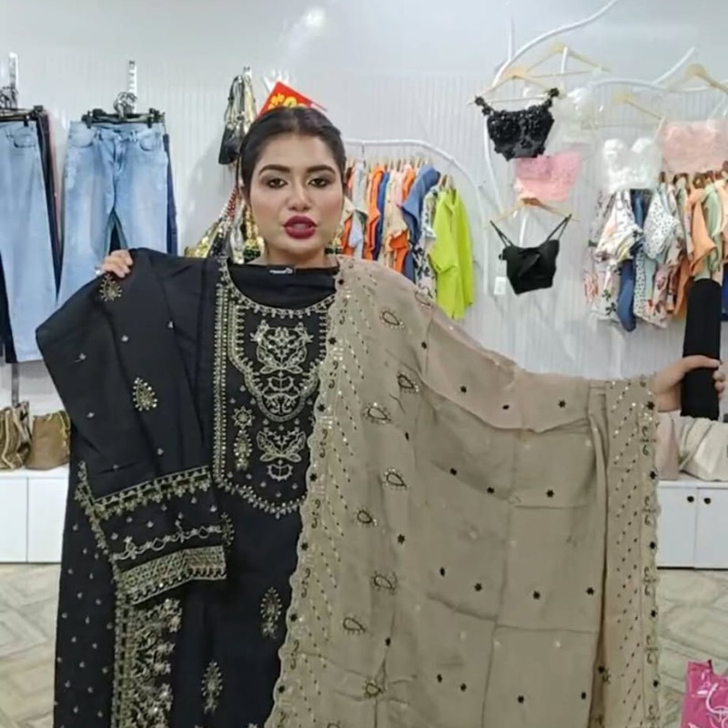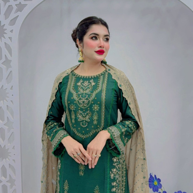 Pure Maslin Cotton Embroidery Sequence three piece /-