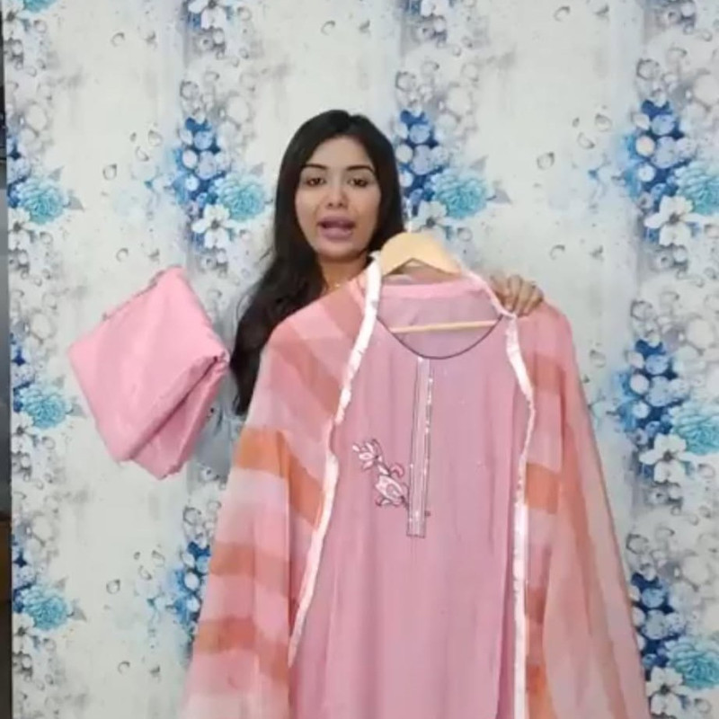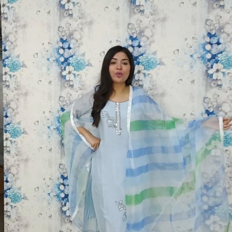 Pure Semi Maslin Embroidery Sequence Stone work four piece