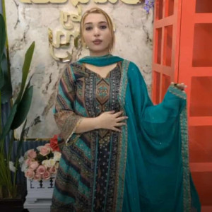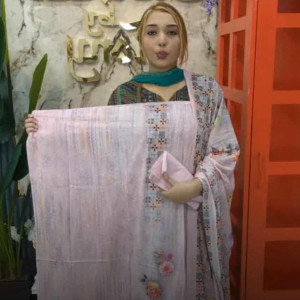 Pure Maslin Cotton Embroidery Semi Stitch three piece Body - 48, Long - 47