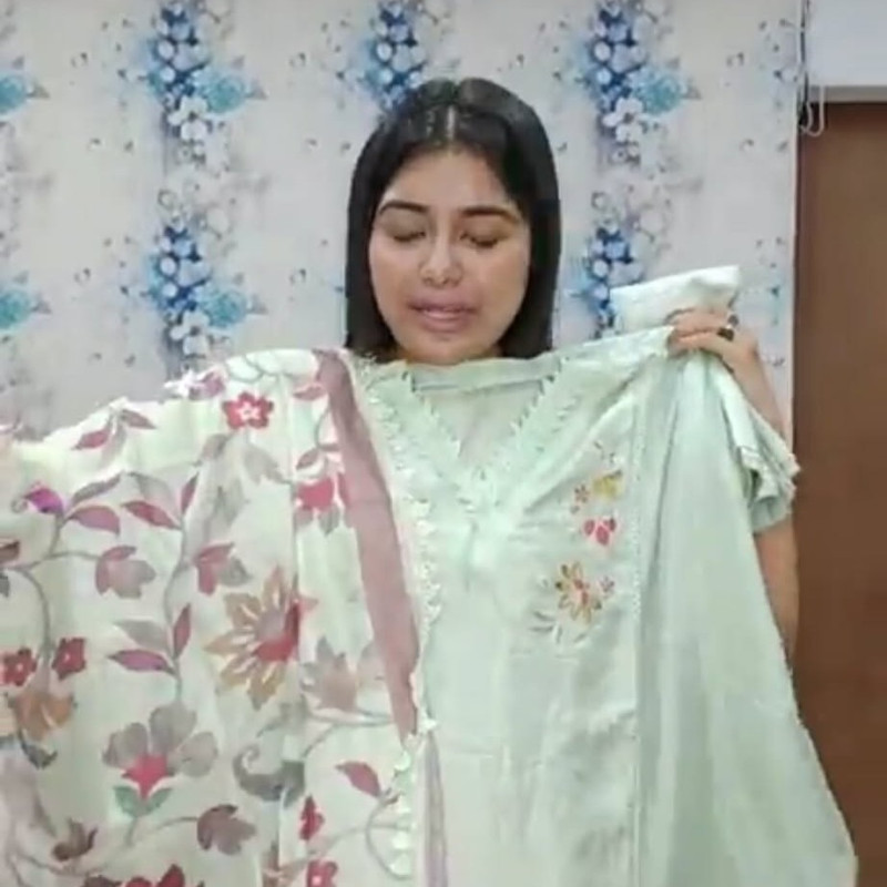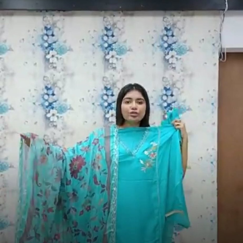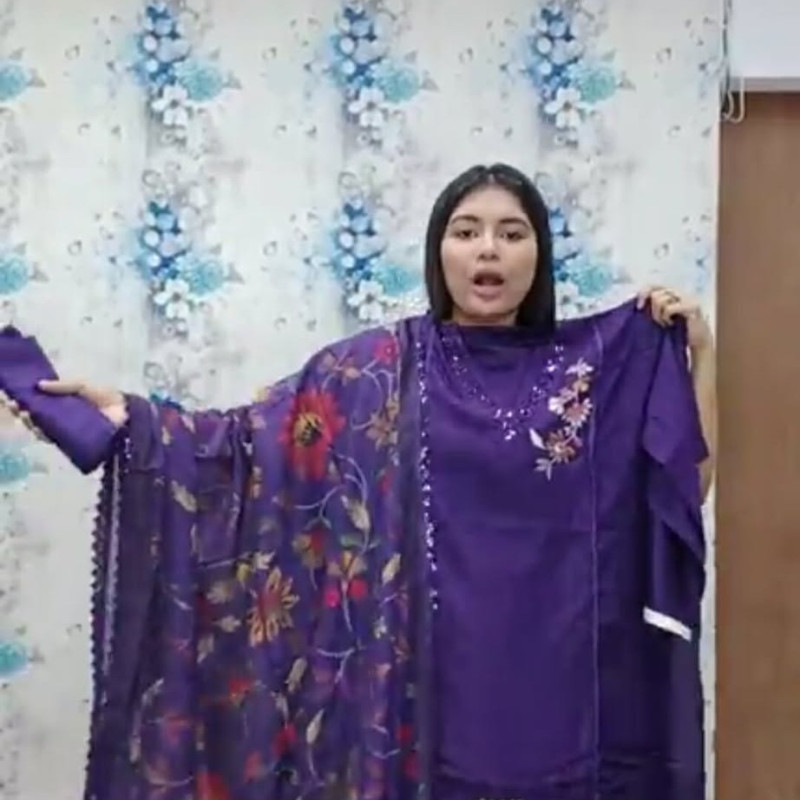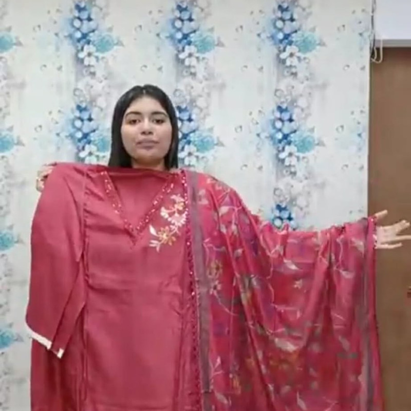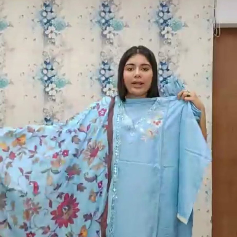 Pure Maslin Cotton Embroidery Sequence three piece/-