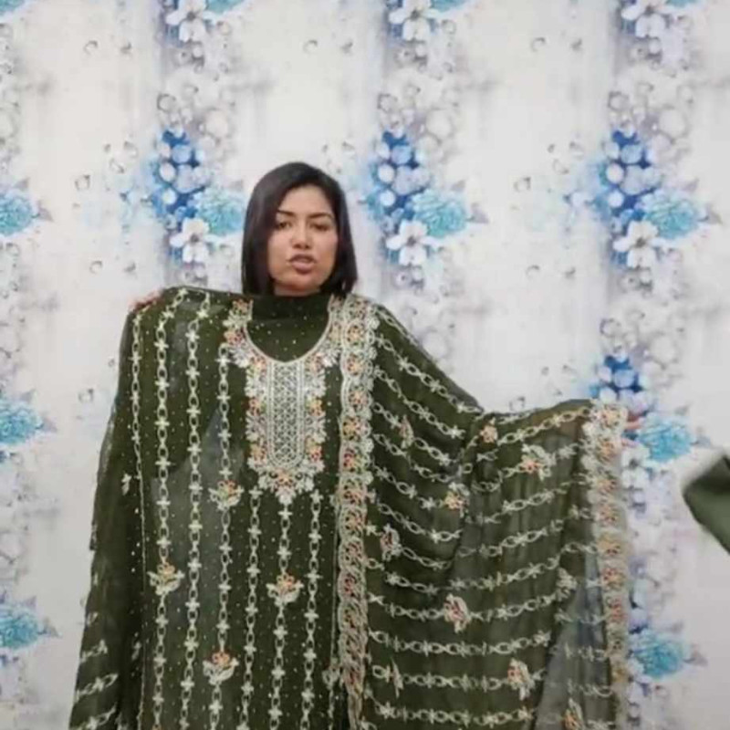 Pure Chiffon Georgette Embroidery Stone Work four piece