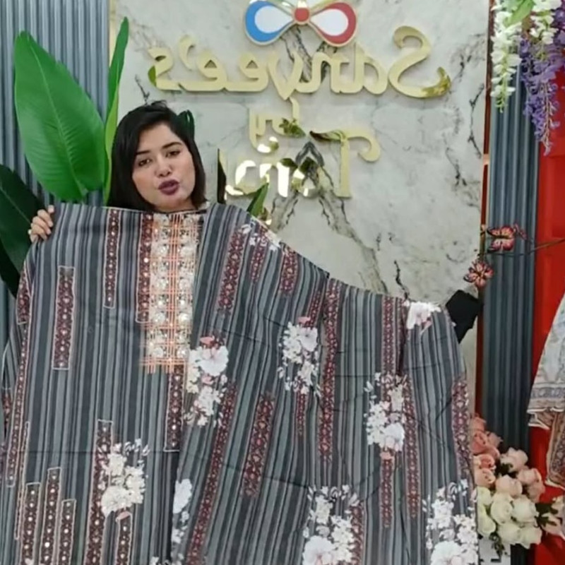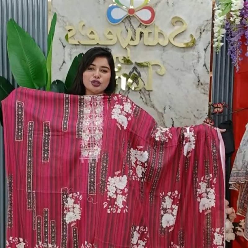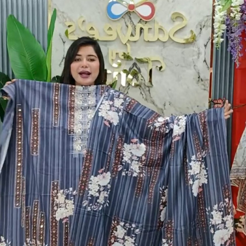 Pure Cotton Embroidery Stone Mirror work three piece /-