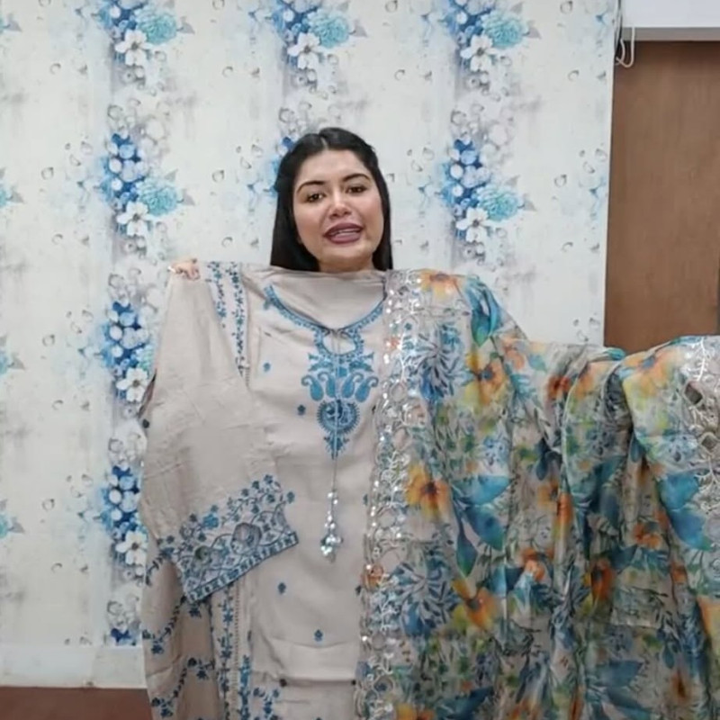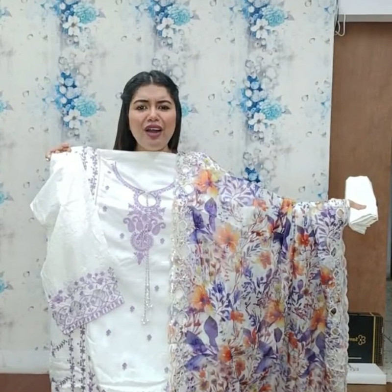 Pure Maslin Cotton Embroidery three piece/-