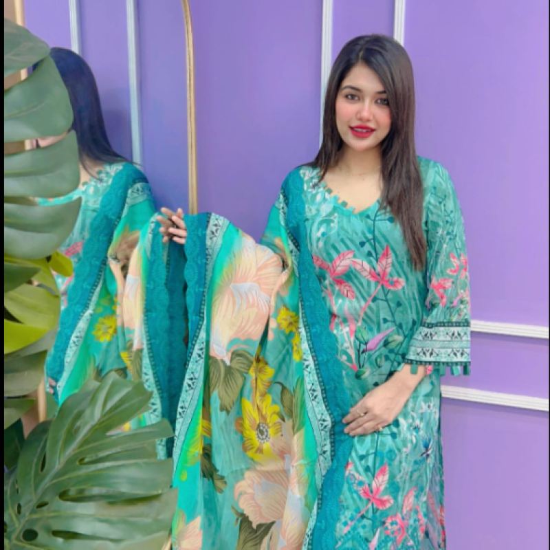 Pure Lawn Cotton three piece - Delivery charge free