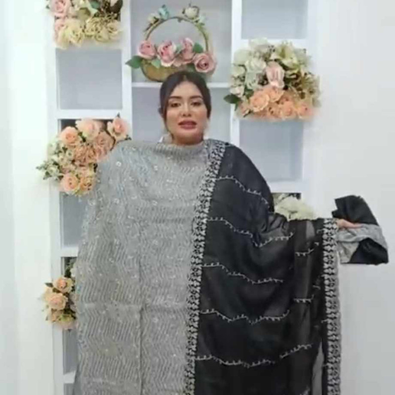 Pure Silk Cotton Embroidery Matte Sequence three piece