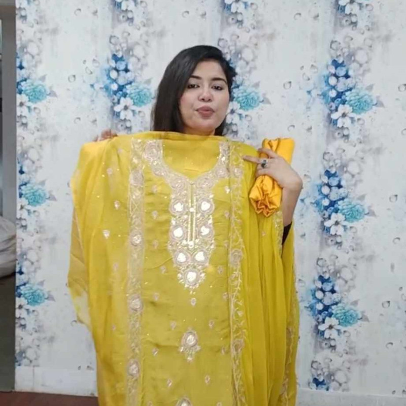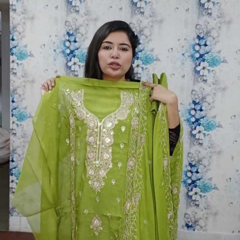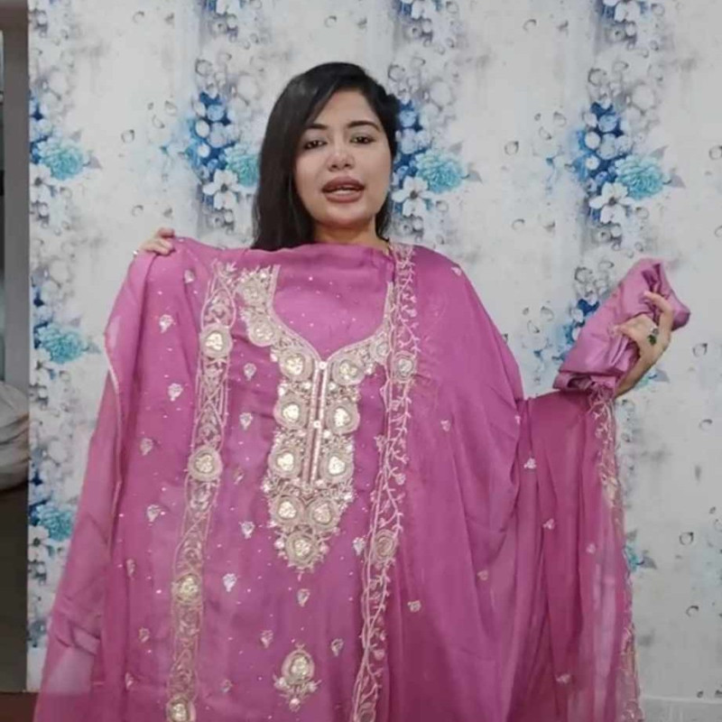 Pure Semi Maslin Embroidery Stone Work Matte Sequence four piece