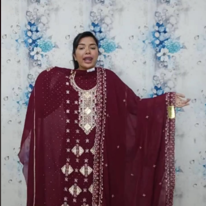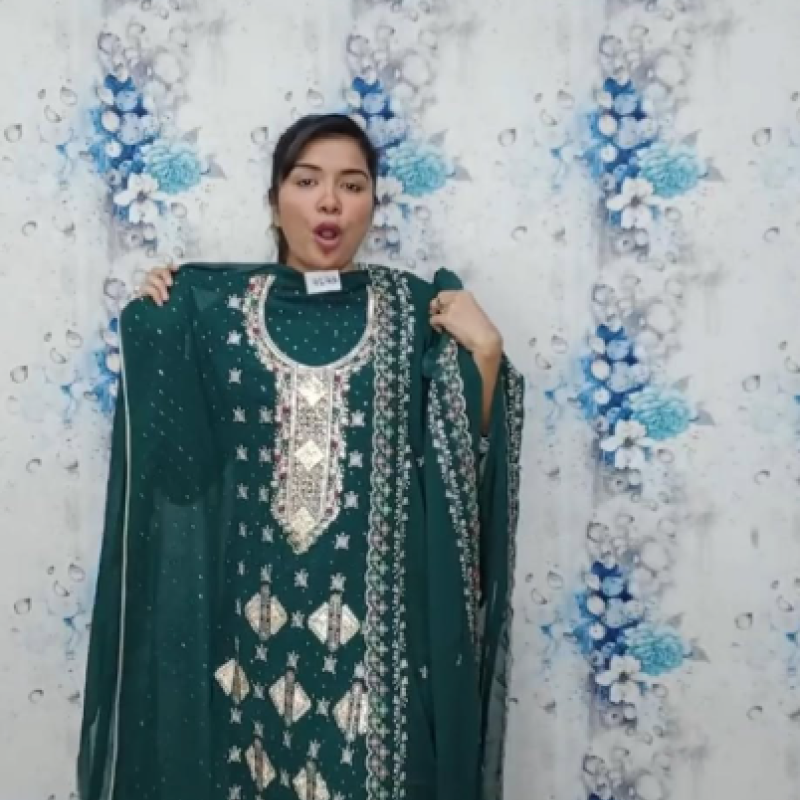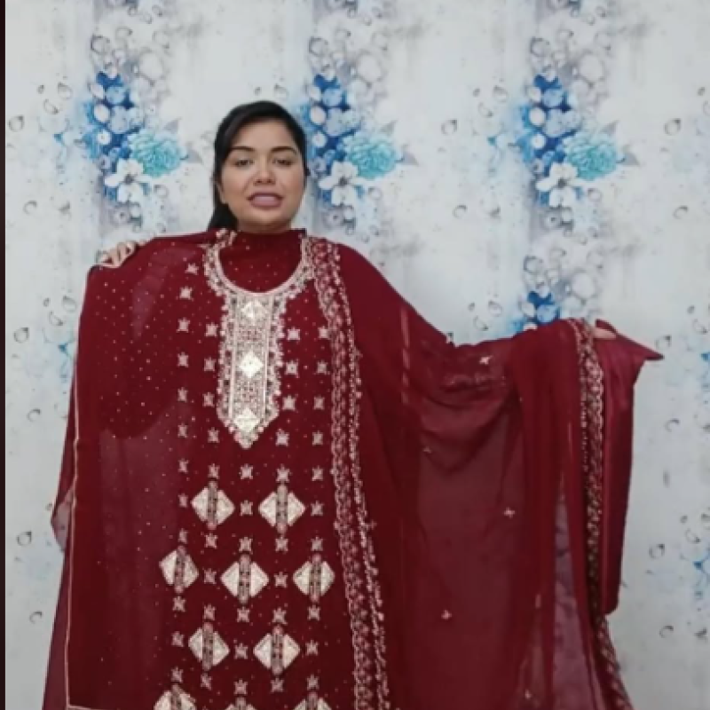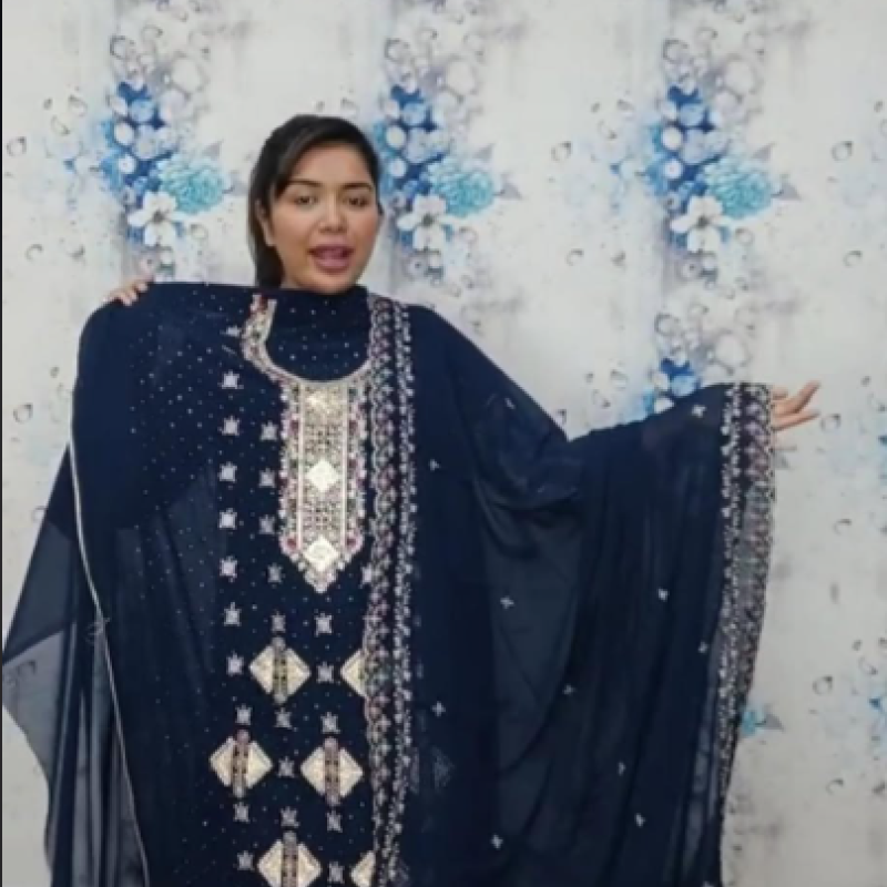 Pure Chiffon Georgette Embroidery Stone work four piece