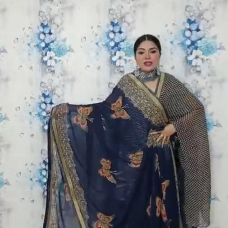 Pure Chiffon Georgette Savoraski Stone work Sharee with blouse piece