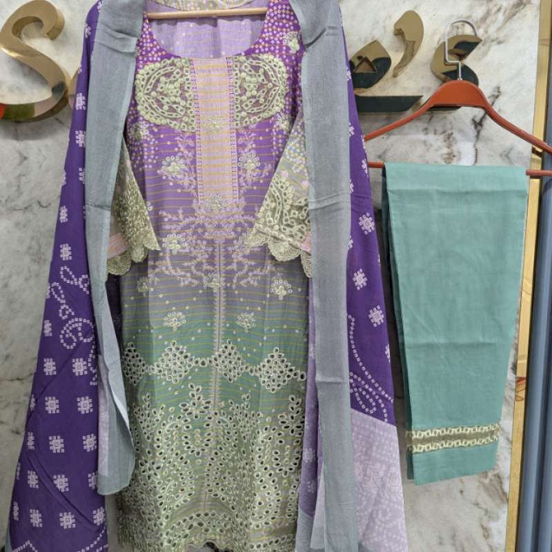 Pure Premium Cotton Chikenkari Embroidery Pannel three piece