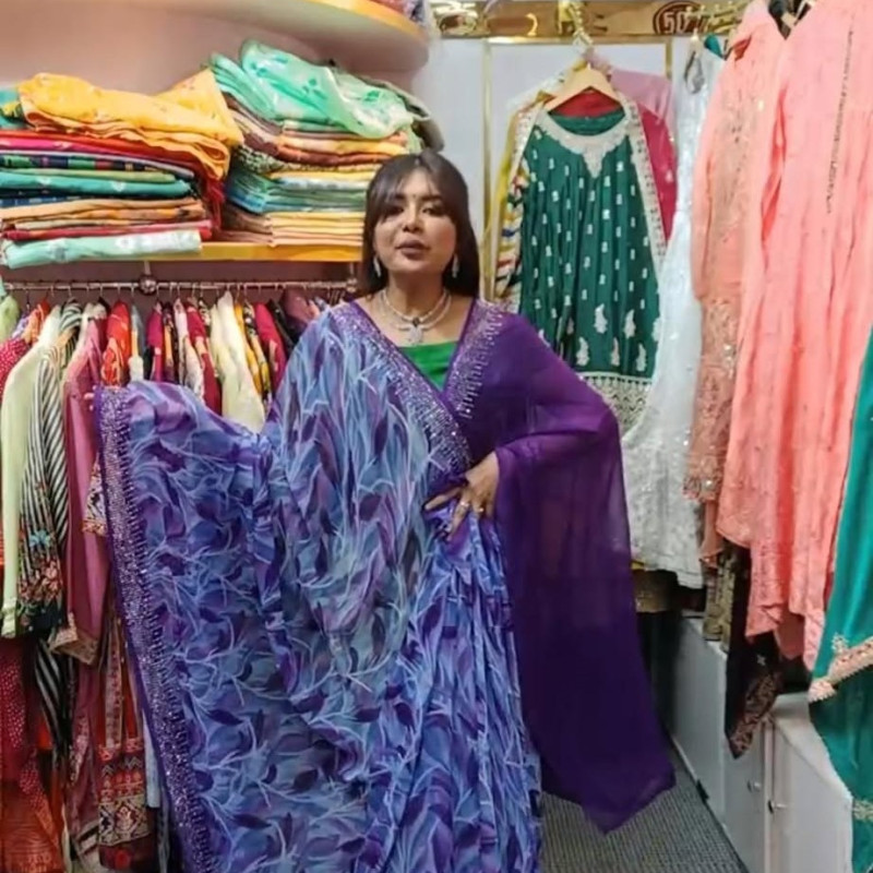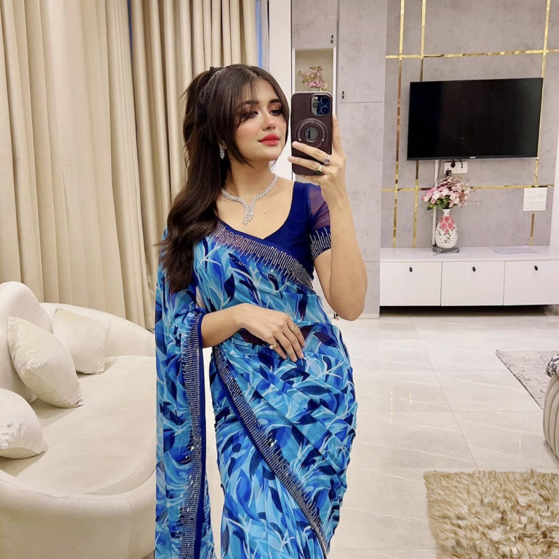 Pure Chiffon Georgette Savoraski Stone work Sharee with blouse piece -