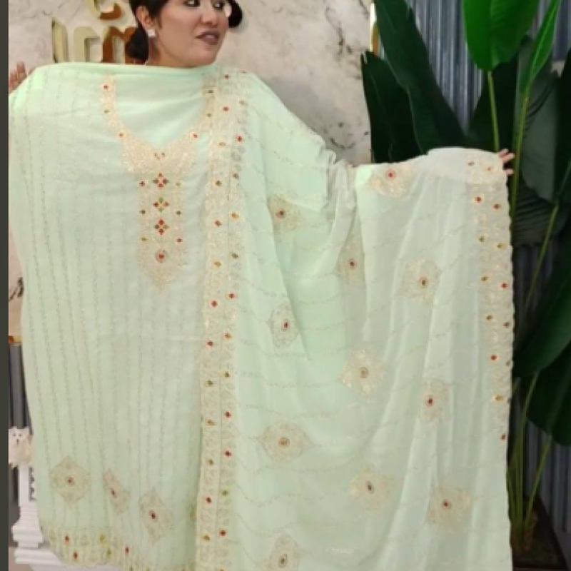 Pure Chiffon Georgette Embroidery four piece