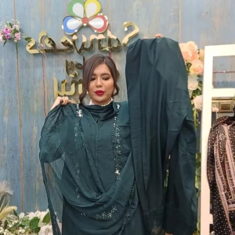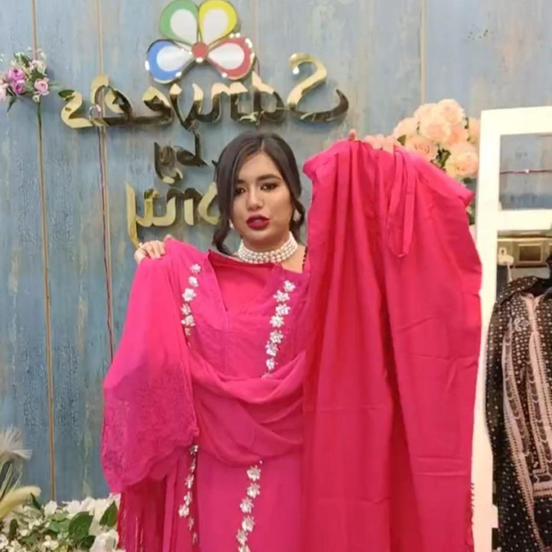 Pure Cotton Chikenkari Karchupi work Semi Stitch three piece Body - 50, Long - 43
