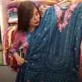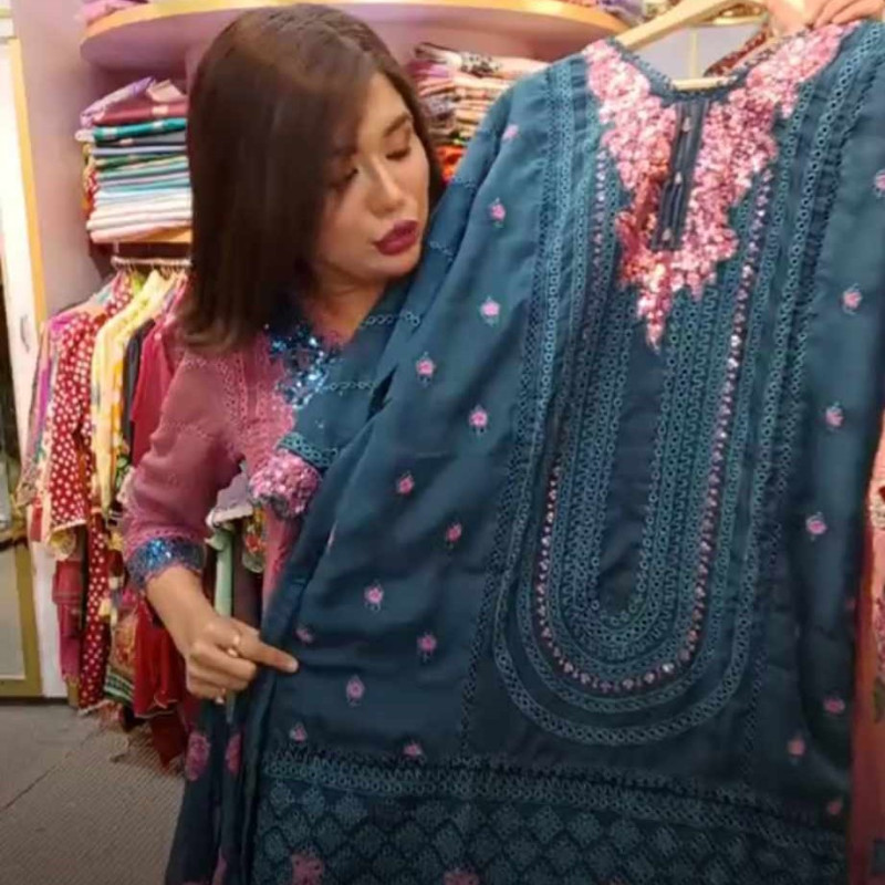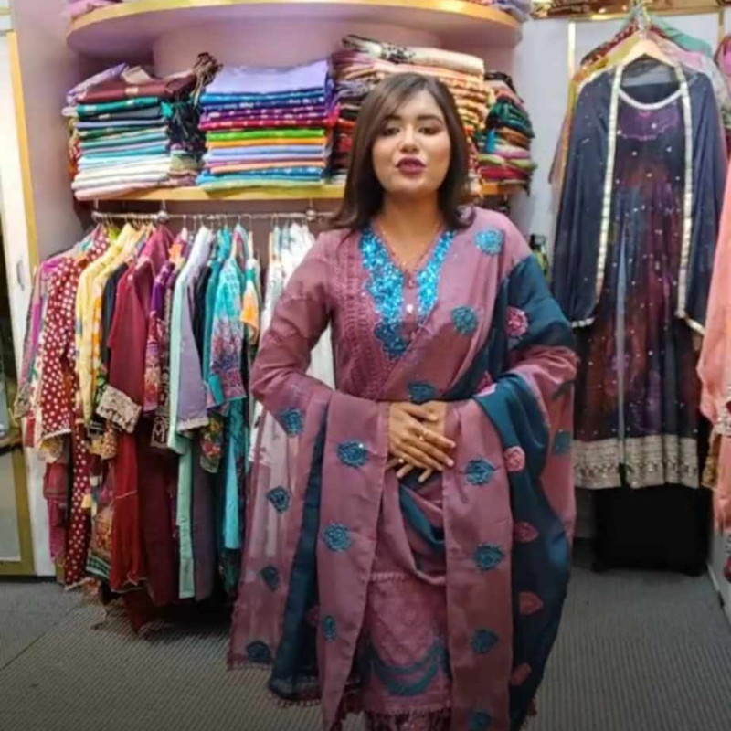 Pure Cotton Chikenkari Embroidery Sequence Semi Stitch three piece piece Body - 46, Long - 45