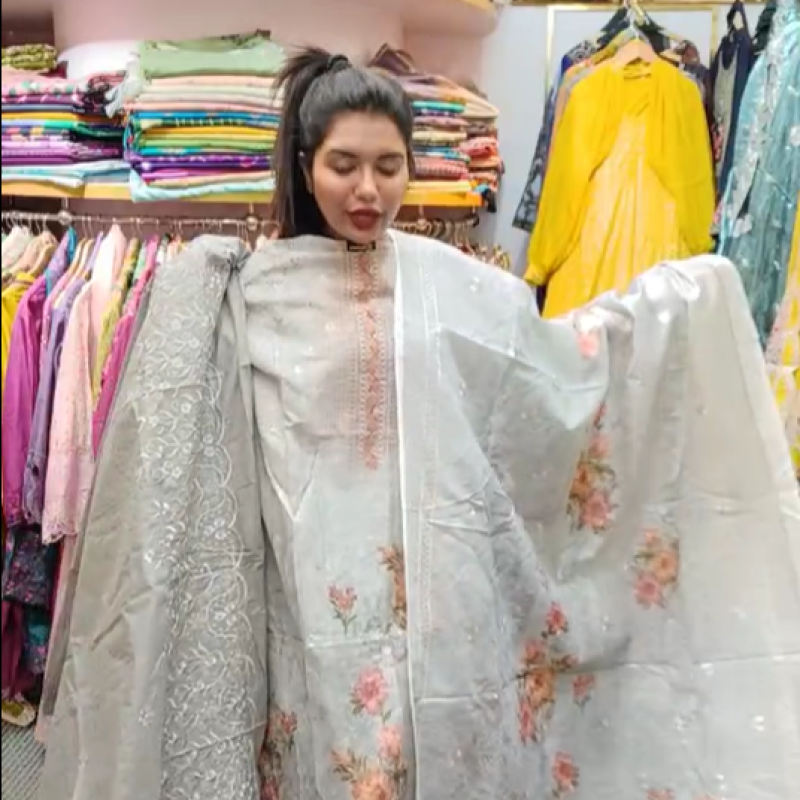 Pure Cotton Chikenkari Embroidery Sequence three piece