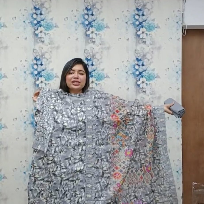 Pure Cotton Chikenkari Embroidery Sequence Semi Stitch three piece Body - 52, Long - 45 /-