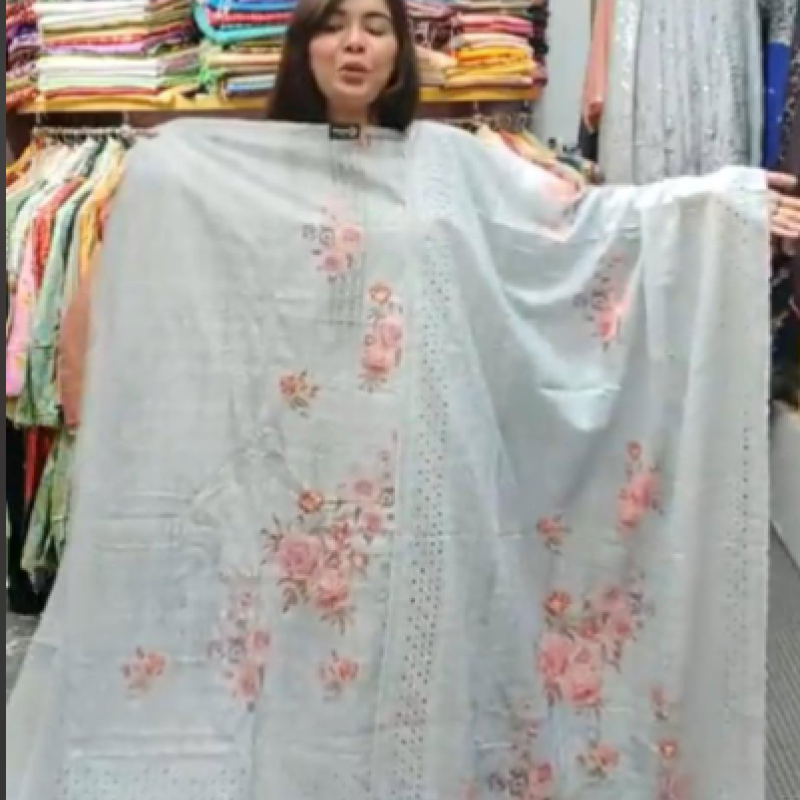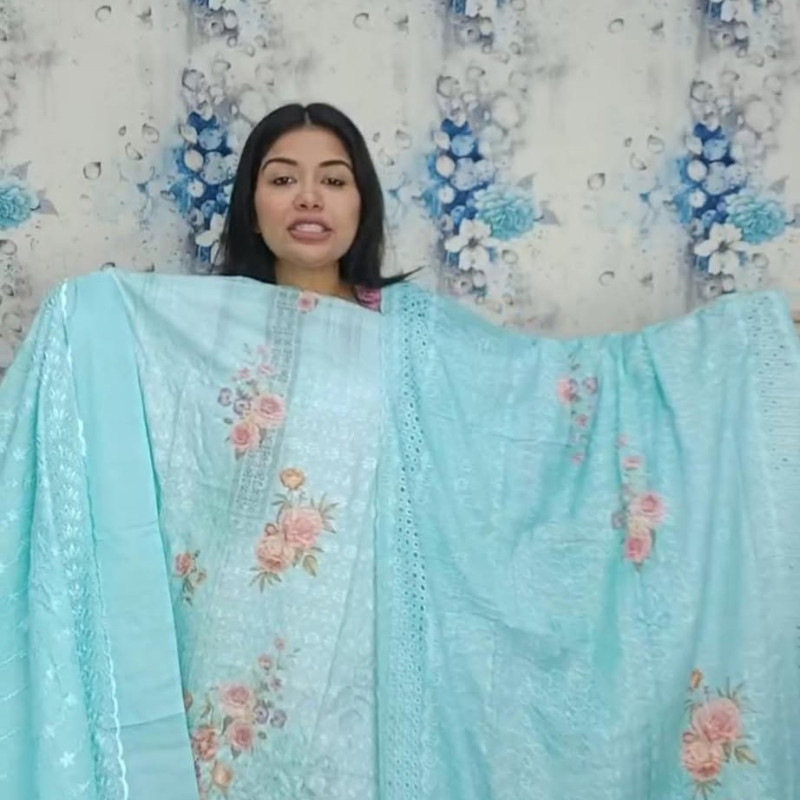 Pure Cotton Chikenkari Embroidery Sequence three piece