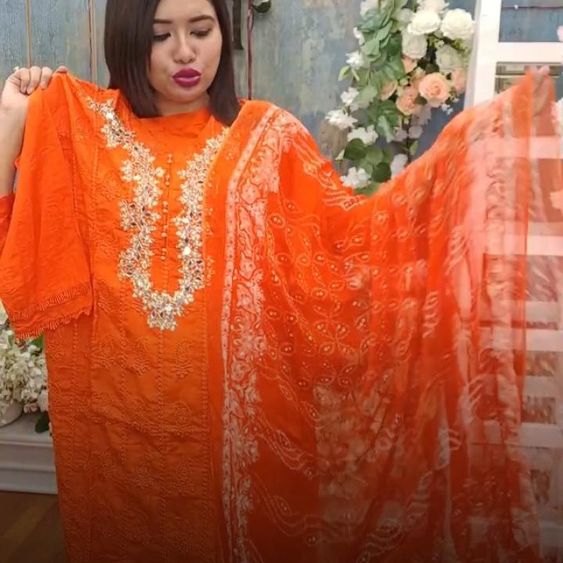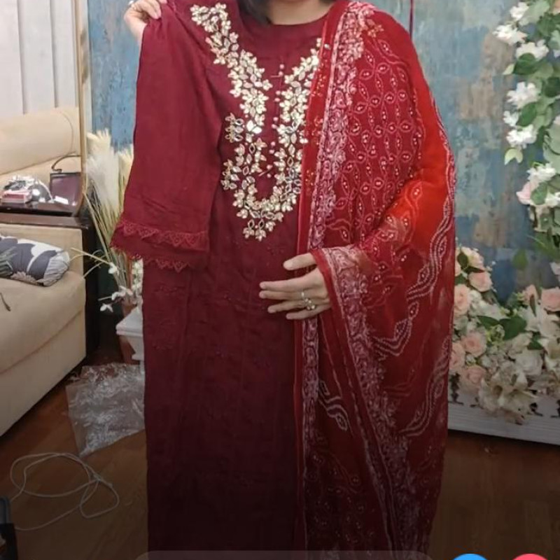 Pure cotton embrotari and karchupi work 2pce, body 46, long 42,