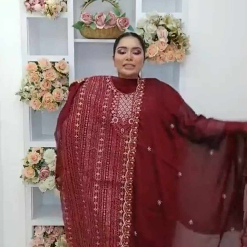 Pure Silk Cotton Embroidery Matte Sequence three piece