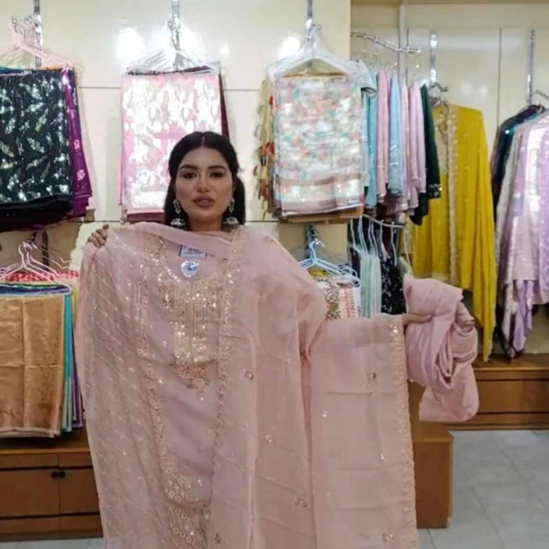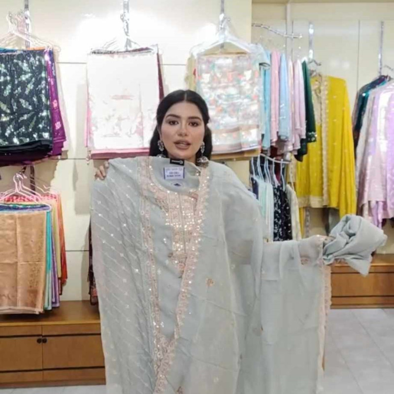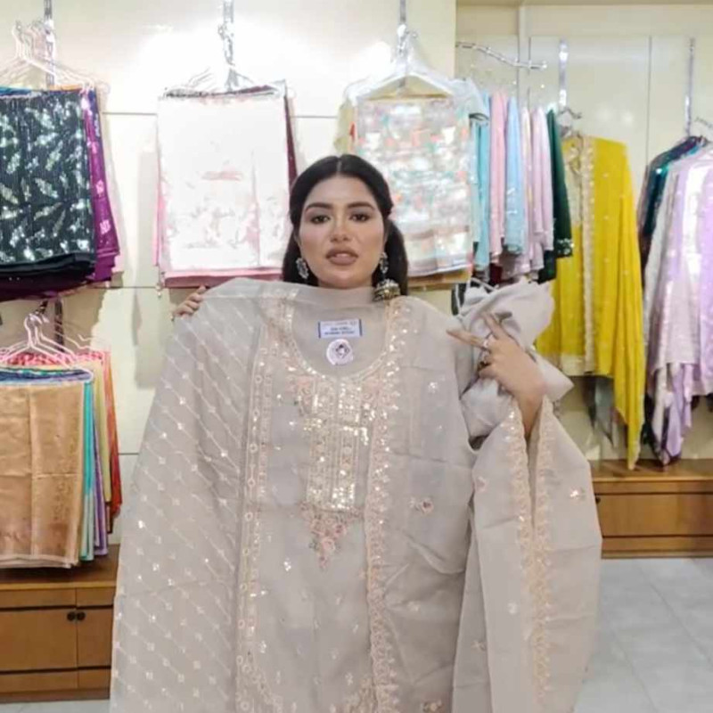 Orginal Indian Delhi Boutique Pure Semi Maslin Embroidery Sequence four piece
