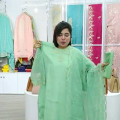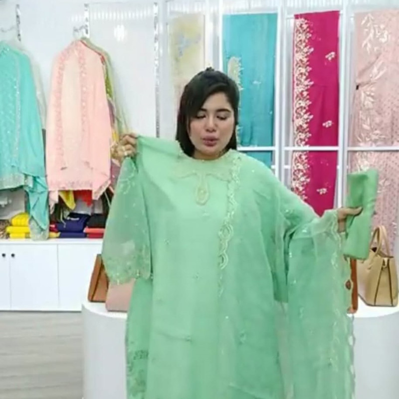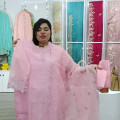 Pure Kota Cotton Embroidery Sequence Pearl Work Semi Stitch Inner Attach three piece Body - 48, Long - 48