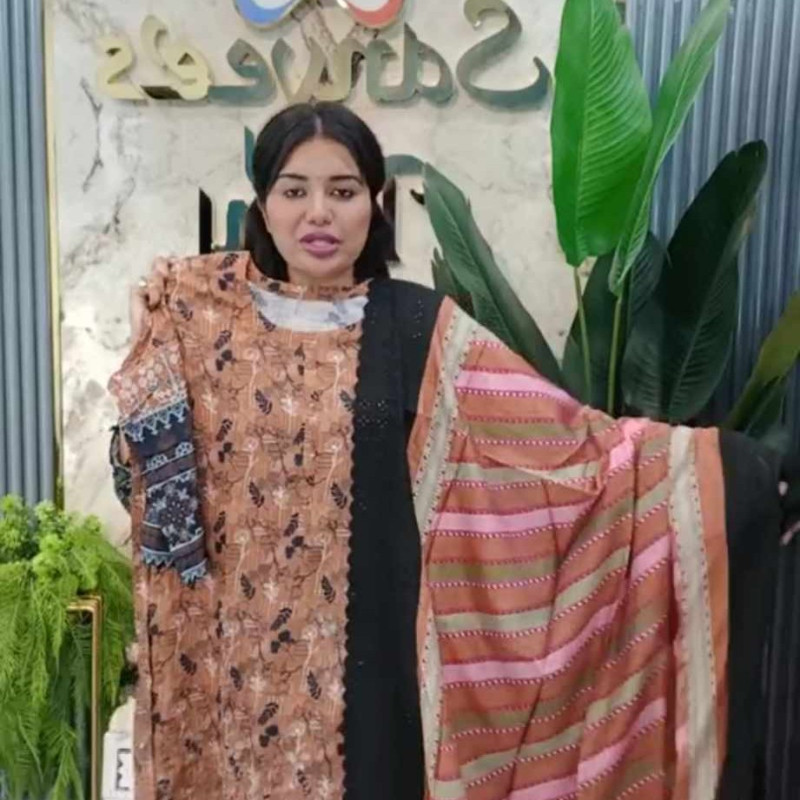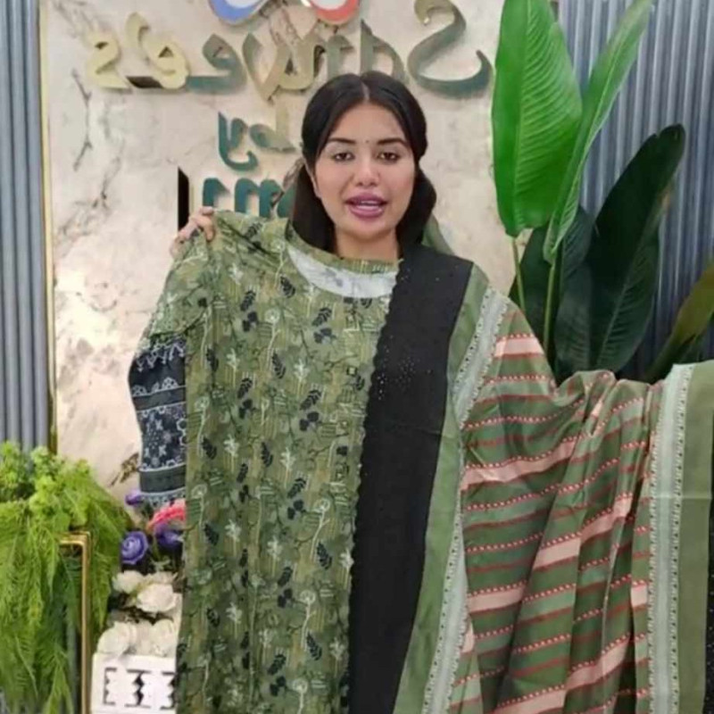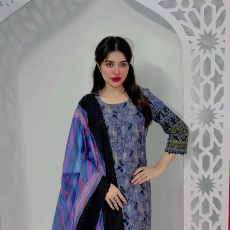 Pure Cotton Chikenkari Embroidery Semi Stitch three piece Body - 48, Long - 42