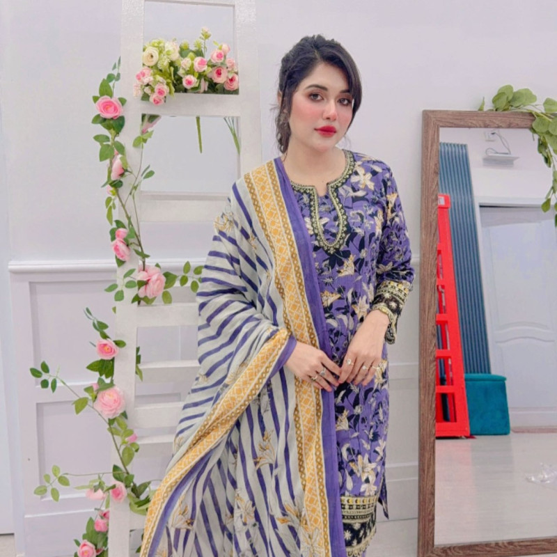 Pure Cotton Embroidery Matte Sequence Stitch three piece Body - 52, Long - 40