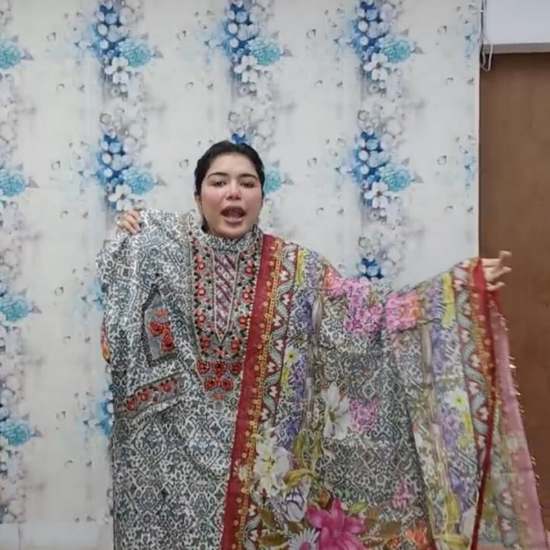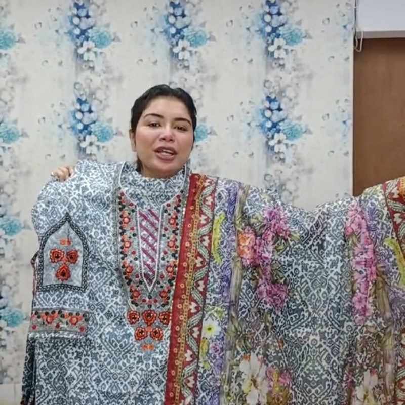 Pure Cotton Embroidery Matte Sequence Stitch three piece Body - 50, Long - 45/-