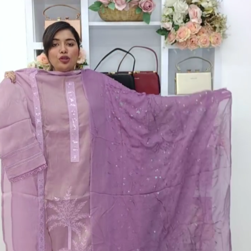 Pure Fancy Glossy Silk Embroidery Stone work four piece
