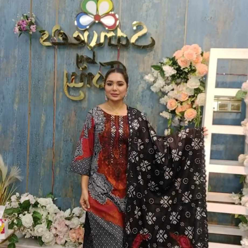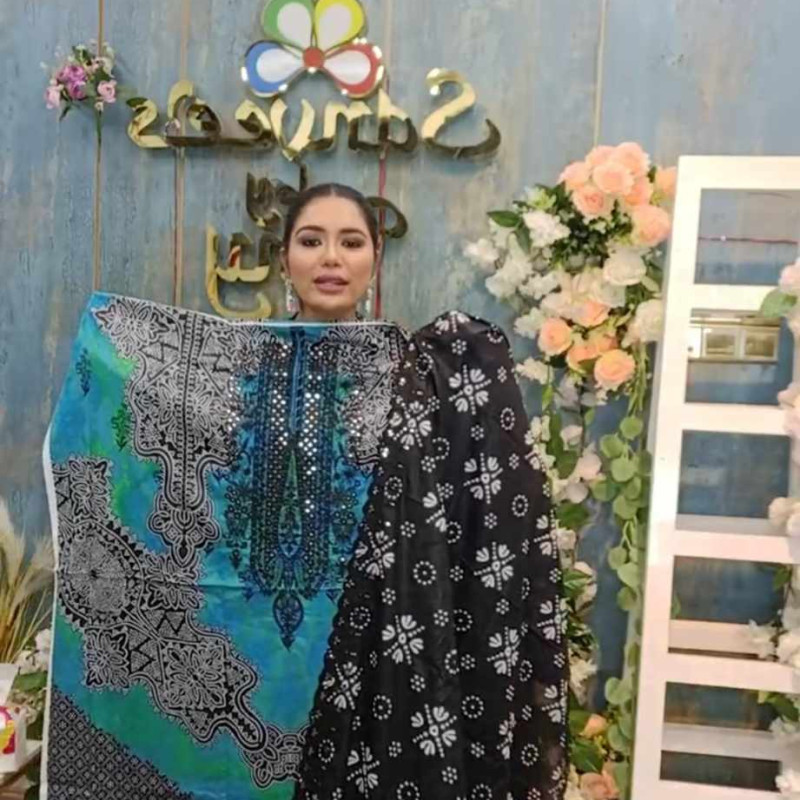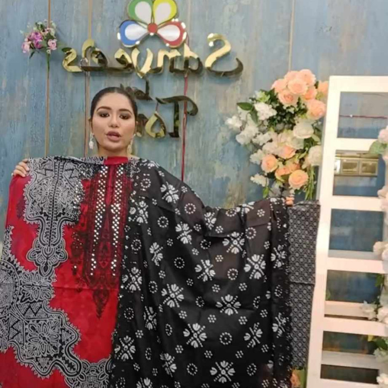 Pure Cotton Embroidery Sequence Dollar work three piece /-