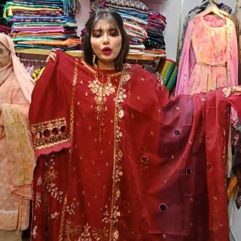 Pure Maslin Cotton Embroidery Sequence Semi Stitch three piece Body - 52, Long - 47